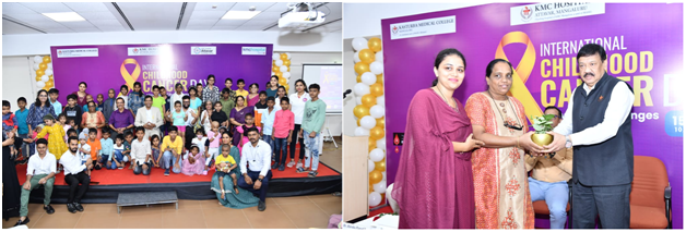 International Childhood Cancer Day Programme organized by the KMC Hospital Attavara, Mangalore on 15th Feb 2024.Mrs. Veronica Pinto and Mrs.Ghanashree receive a token of appreciation from Dr.Dilip G.Nayak Pro Vice Chancellor of MAHE (Mangalore campus), .